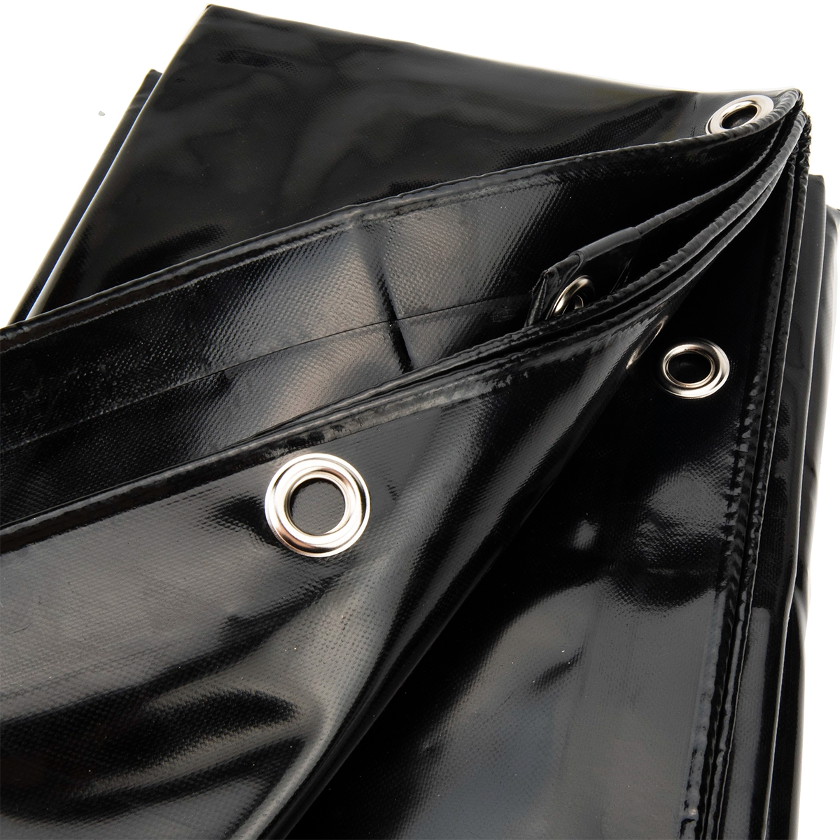 Extra starke, schwarze PVC-Abdeckplane (6×10 m, 650 g/m²) für ganzjährigen Außeneinsatz. 100 % wasserdicht, UV-beständig und chemikalienresistent – ideal für Bau, Industrie, Landwirtschaft und Transport. Mit 18 mm rostfreien Ösen alle 50 cm, verschweißtem Saum und verstärkten Ecken, sofort einsatzbereit.